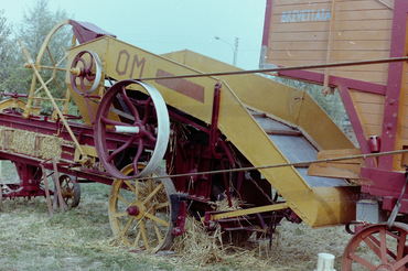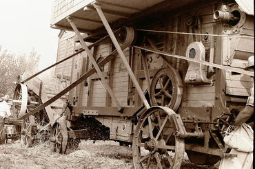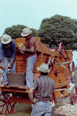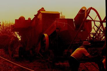 Threshing grain.