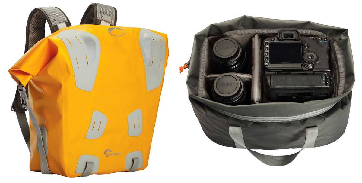 The Lowepro DryZone BP40L is a waterproof camera backpack with space for up to 1 camera body and 2-3 lenses. It measures 32 x 22 x 44 centimeters and it weights 1.4 kg; these dimensions are compatible with the hand luggage limits of most airlines.