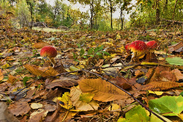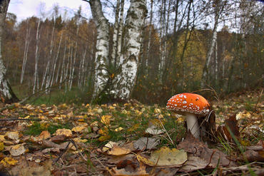 Amanita muscaria among the birch roots