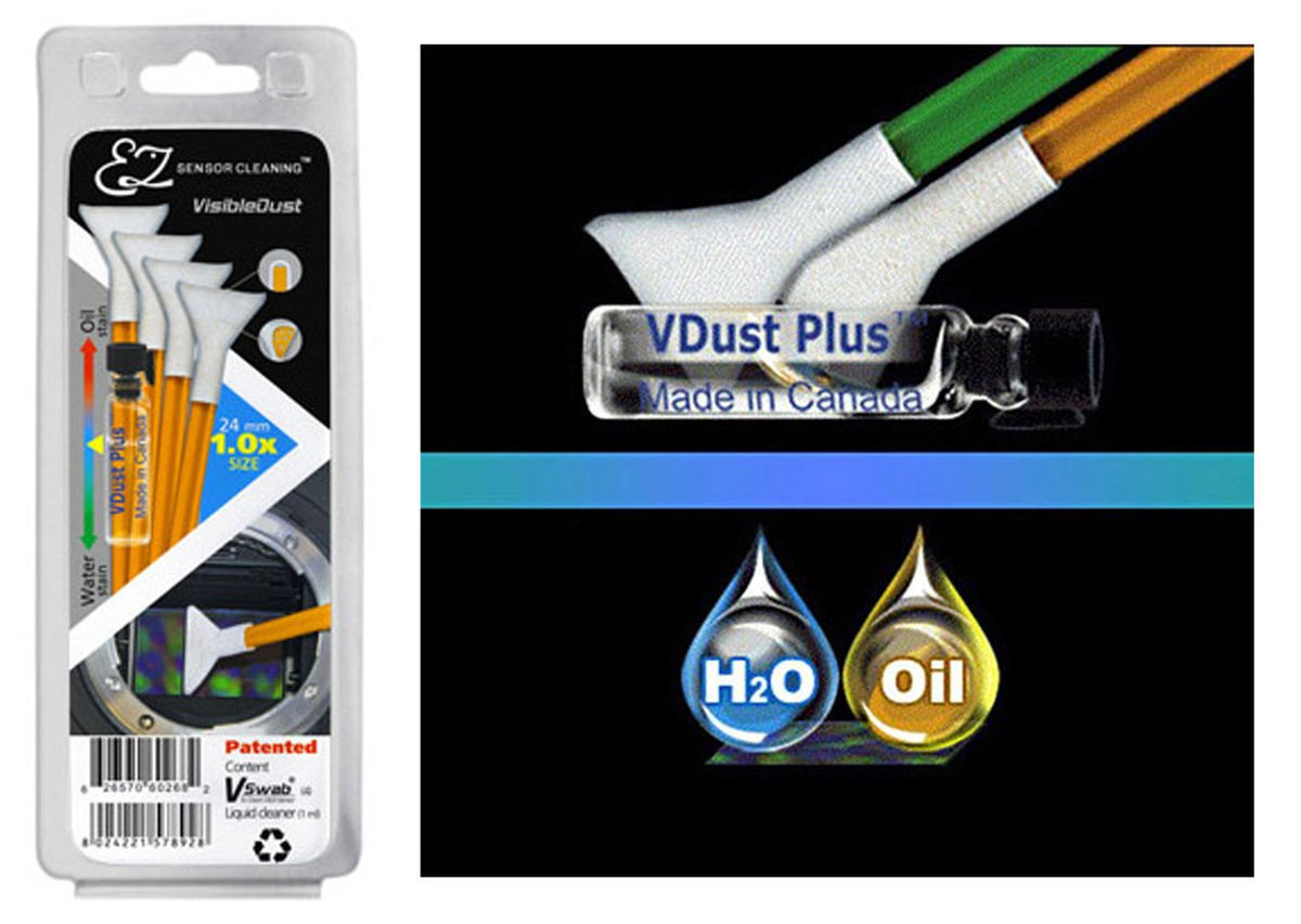 The VDust Plus Arancione 1.0x (DHAP Vswabs) is a sensor cleaning kit for fullframe cameras composed by: 4 single-use DHAP Vswabs cleaning swabs (orange series, 1.0x); VDust Plus liquid (strength: average). It is enough to clean the sensor 4 times. It has been in production from 2012 to 2022 (discontinued);