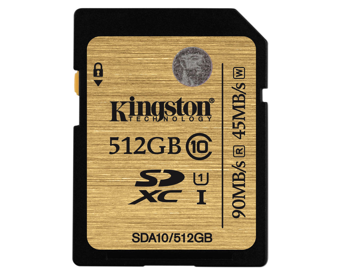 La Kingston SDXC 512 GB r90w45 (90 MB/s) è una scheda di memoria SD XC da 512 GB, con velocità di lettura 90 MB/s e velocità di scrittura 45MB/s (classe U1, C10); è adatta anche alla registrazione di video Full HD 1080p. E' garantita per funzionare a temperature tra i -25 e i +85 gradi. È stato prodotto dal 2016 al 2019 (fuori produzione); il prezzo, durante il periodo di produzione, era sui 199 €.nessun voto.