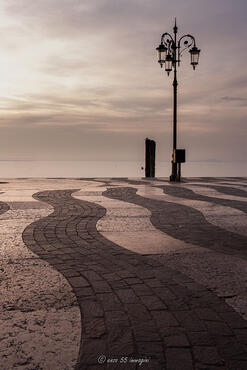 Estremità del lago d'Iseo con la nebbia al pomeriggio