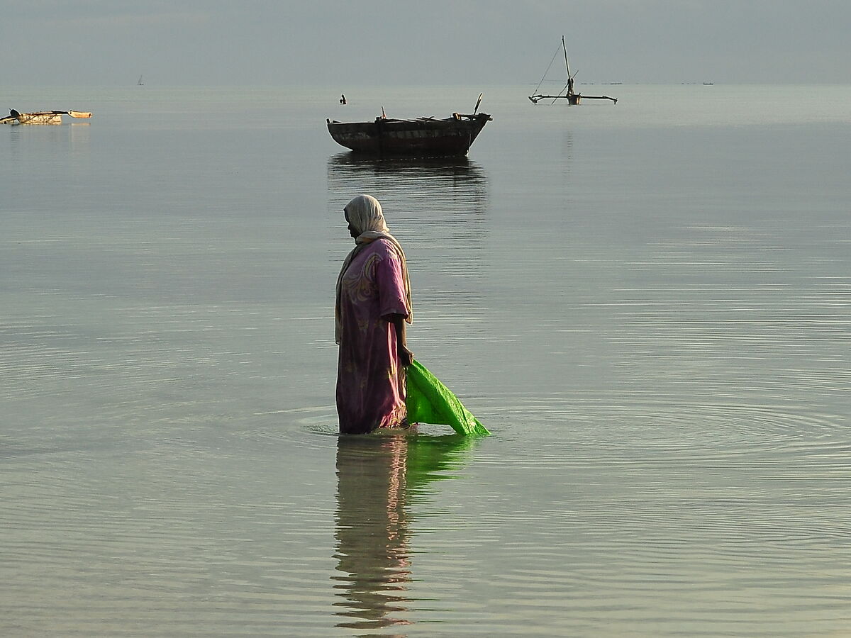 Raccolta delle alghe nella bassa marea, Jambiani, Zanzibar