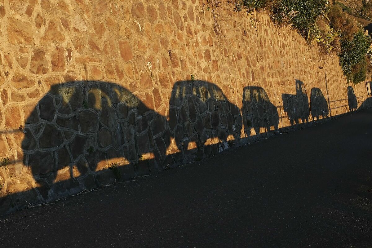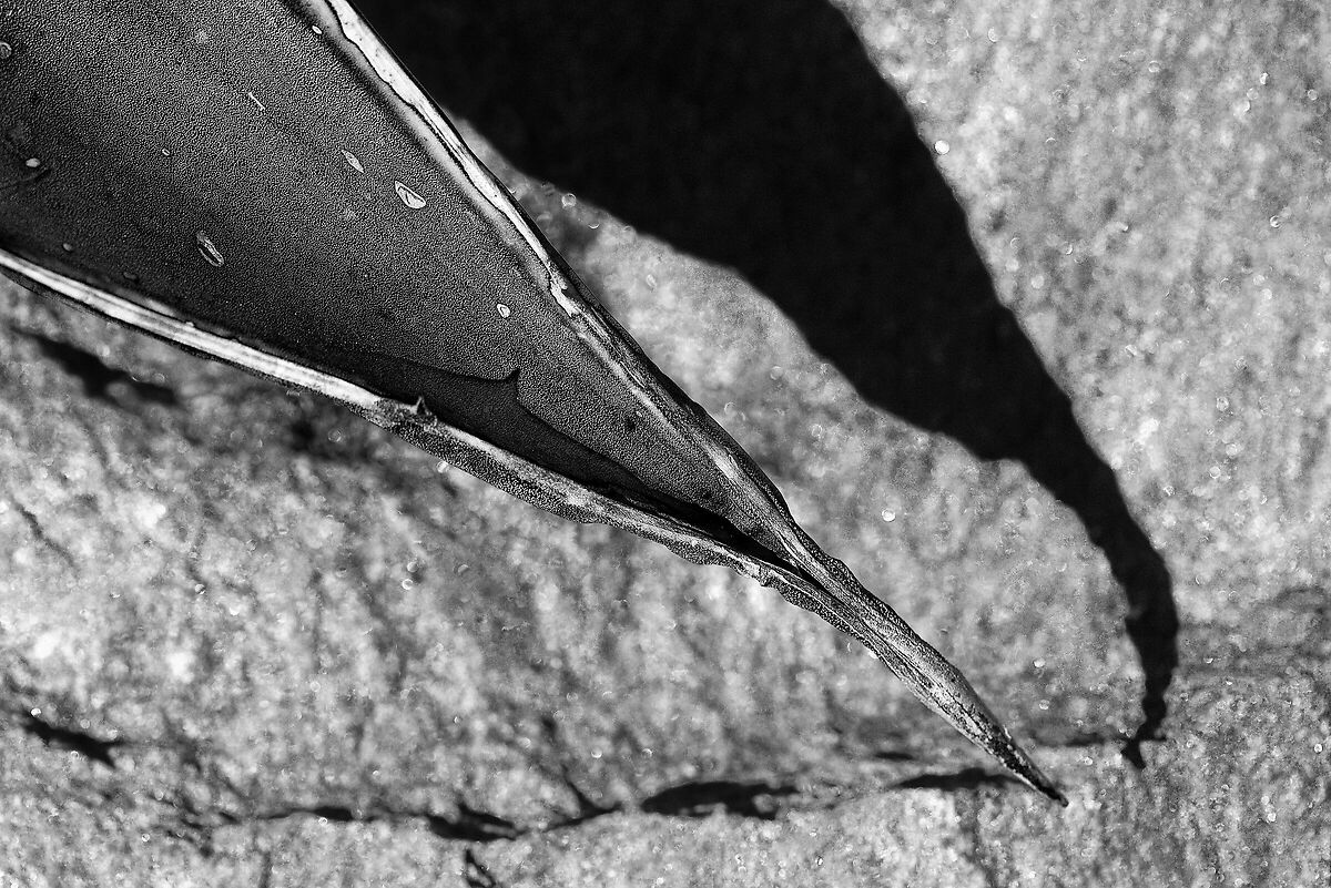Una foglia di agave, insieme alla sua ombra proiettata su un muretto, disegnano il profilo di un becco rapace.