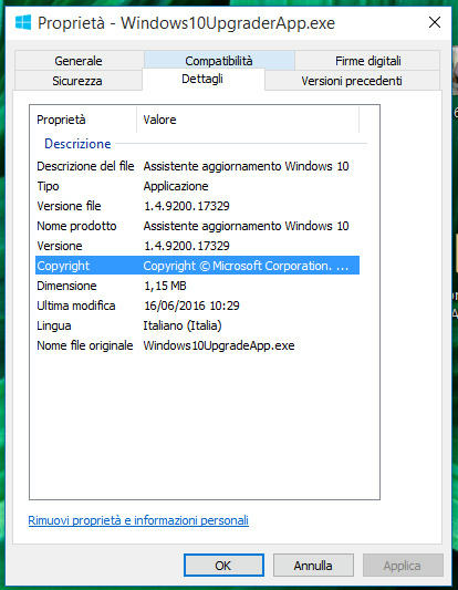 Aggiornamento: Sul sito della Microsoft mi dicono che in realtà esiste un "Assistente di Aggiornamento a Windows 10" anche se la versione non coincide con quella mia. Un altro utente ha scaricato quest'assistente da quì cliccando su " Aggiorna ora ", ma la scritta"China" nella riga di comando non c'è. Un moderatore mi ha consigliato, nel dubbio, di disinstallare questo "Assistente" dal pannello di controllo e di procedere ad aggiornare la versione 10586 utilizzando " Media Creation Tools ". |