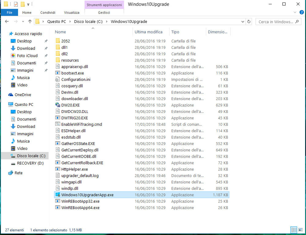 Nando, aggiornare un sistema a Windows 10-1511 con Media Creation Tools ci può mettere parecchie ore, ma davvero tante (un portatile non nuovo di un cliente ci ha messo più di 10 ore). Se con Media Creation Tools ti scarichi la versione, la riversi su DVD e fai partire l'aggiornamento dal DVD, avendo l'accortezza di rispondere NO alla richiesta di scaricare anche gli aggiornamenti durante l'installazione, ci metti un paio d'ore. Quest'ultima procedura l'avrò già fatta 6 o 7 volte su computer della famiglia e alcuni dei clienti. Gli aggiornamenti li fai poi fare alla fine di tutta l'installazione principale. Giorgio B. |