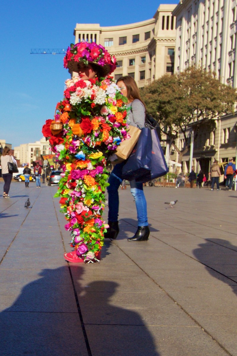 Momento colto a Barcellona, una ragazza (totalmente in fiore) passeggiava per le strade, ho catturato il momento in cui una signora adulta vestita con colori freddi le passava dietro al fine di rappresentare la metafora del cambio di stagioni.