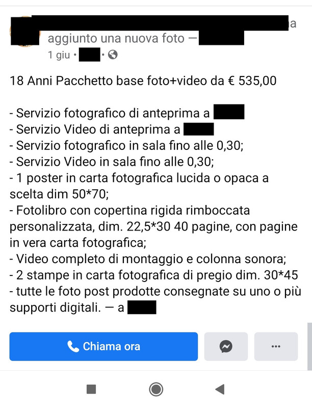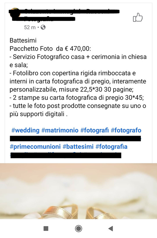 Qui nella zona se dovessi chiedere 470€ per un battesimo con foto della preparazione, chiesa e torta al ristorante non ne farei nemmeno 1 in 12 mesi. Poi che qualcuno dica che bisogna vendere a 2000€ un battesimo è libero di dirlo e scriverlo, ma quando dovrò fare i conti con la realtà capirà ( si spera ) che è completamente infattibile.