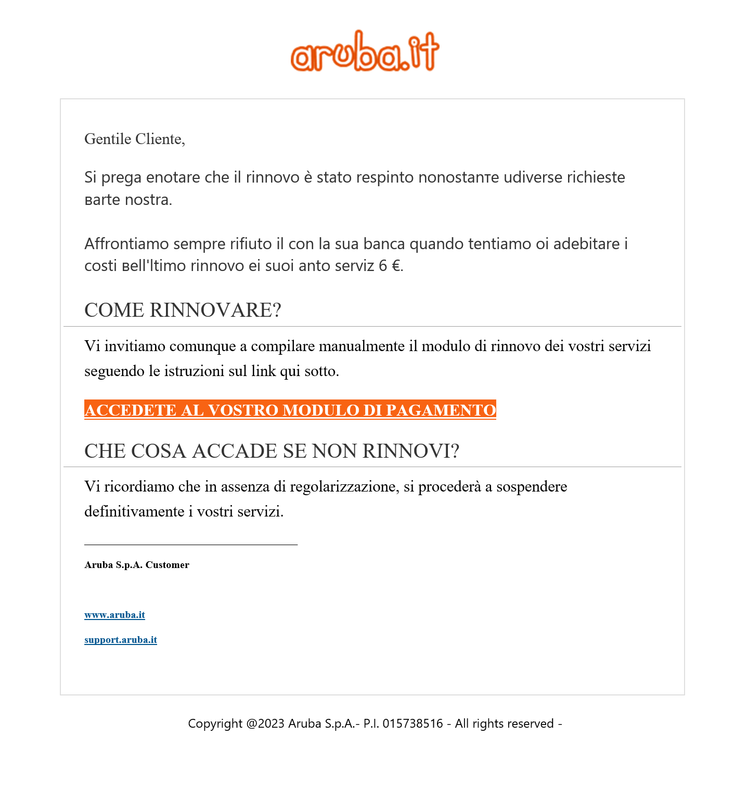 L'altro giorno me n'è arrivata una da parte della sedicente stazione dei carabinieri locale. Scritta correttamente, loghi ok, tutti i dettagli al posto giusto, se non fosse stato per quel "armadeicarabinieri@gmail.com" leggermente sospetto... Solo che lì è facile che la persona di una certa età o digiuna di esperienza ci caschi con tutte le scarpe. |