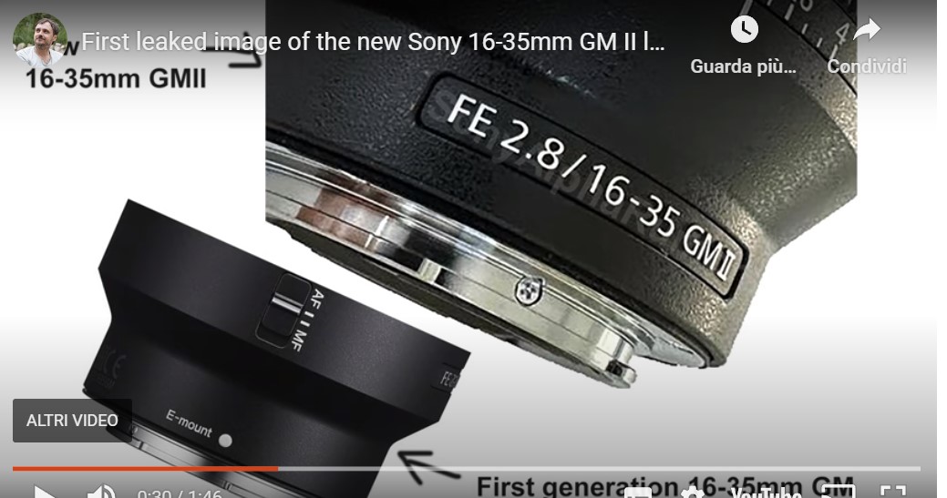 Prima immagine trapelata del nuovo obiettivo GM II da 16-35 mm! Il motivo per cui l'ho chiamato obiettivo gimbal è perché ha un'estensione del barilotto molto corta durante lo zoom.E una terza fonte ha condiviso il prezzo UE che sarà di 2299€!