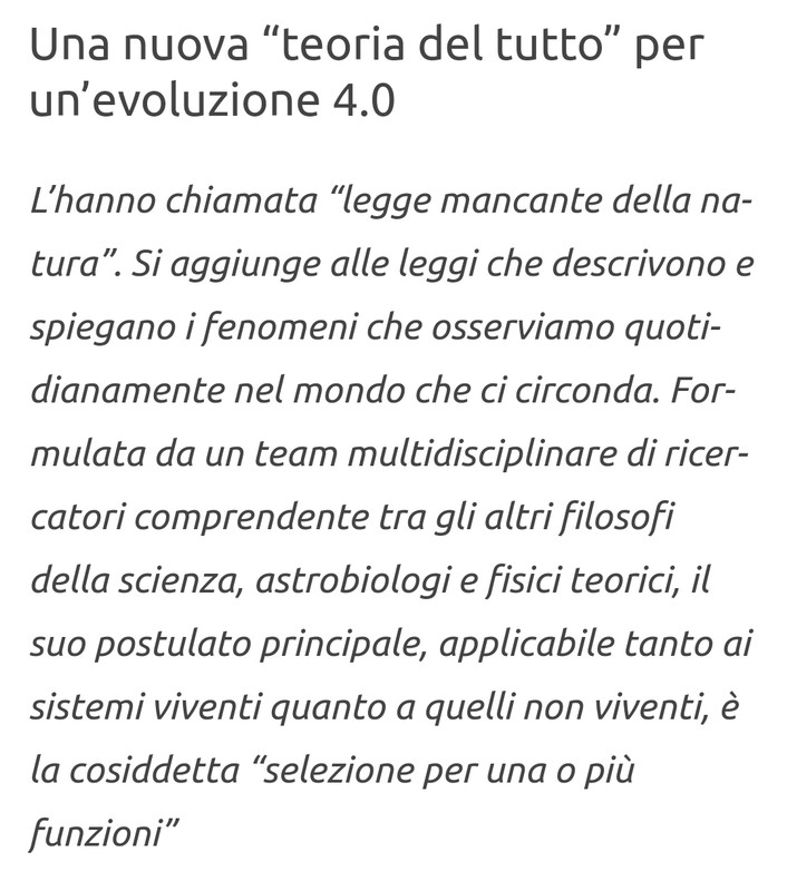 La selezione naturale la teoria più potente che l'umanità abbia mai formulato agisce su ogni cosa fisica in qualsiasi stato in cui si trovi biologica minerale micro e macro nulla può sfuggirgli.