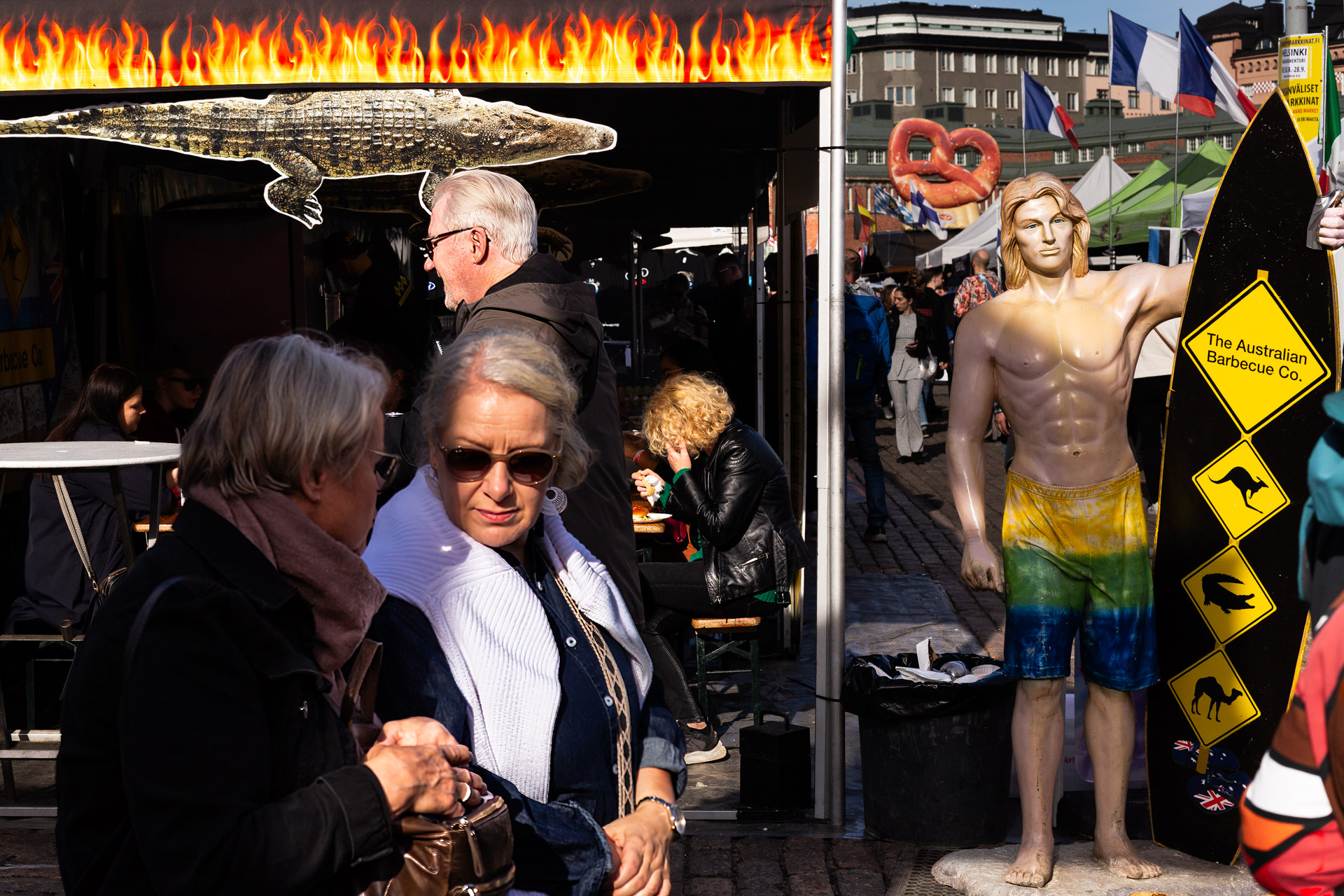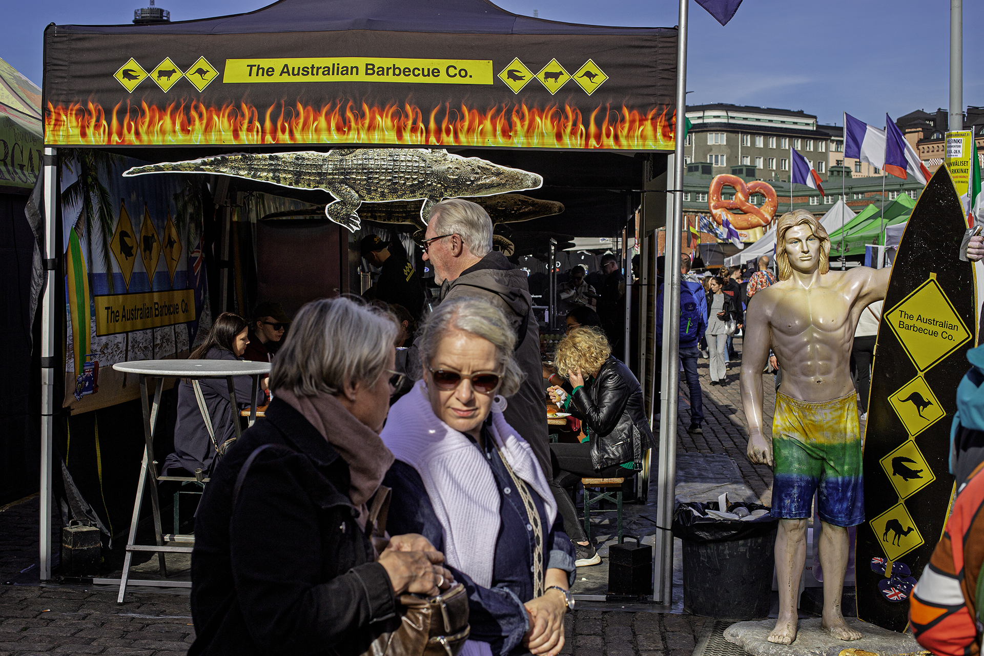 5) Tema: Tema libero. Siamo a Hakaniemen tori (Helsinki), in occasione di un festival di cucina internazionale. B/N o Colore, almeno le mie interpretazioni, mi piacciono entrambe. Fate vobis.