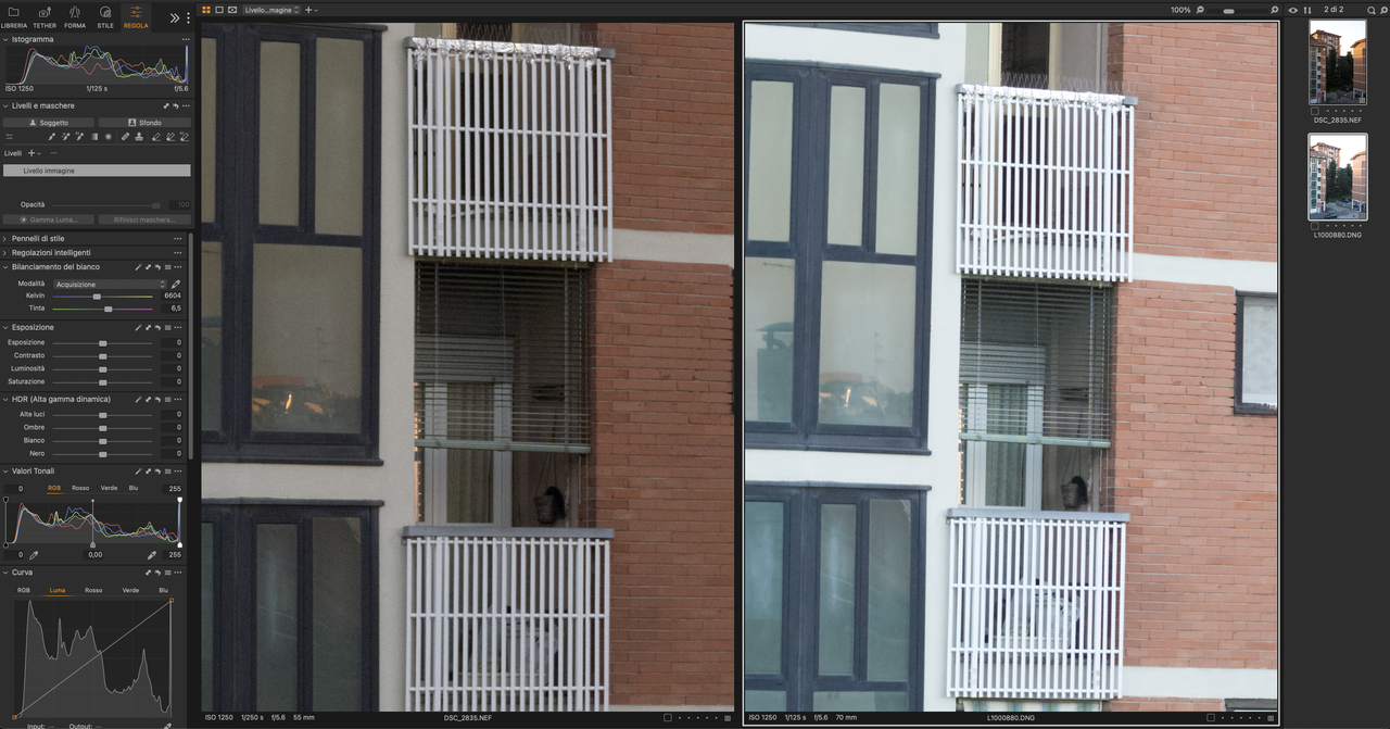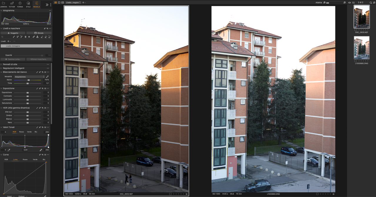 Apritela col tasto dx e cliccate sull'immagine per ingrandirla. A quel punto, non contento, ho alzato di 1 stop entrambi i file, portandoli virtualmente a 2500iso (ricordo che il valore max della S2 è 1250iso).