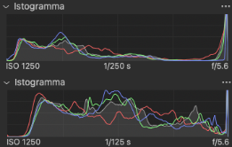 Qui vedete l'istogramma della Nikon, se aumentavo ancora l'esposizione, bruciavo il cielo, questo perchè la nikon restituisce un file molto più contrastato