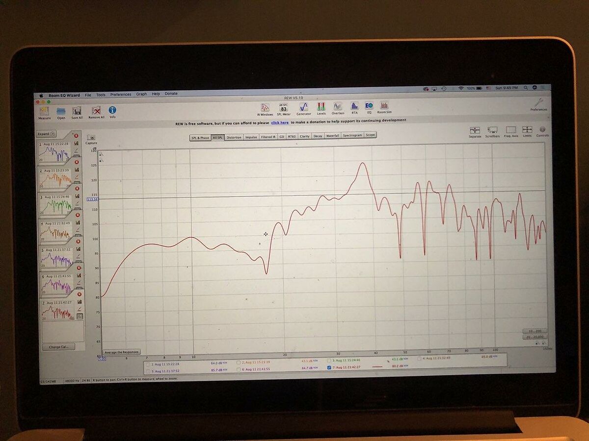 per tenere a bada le basse uso il il mini dsp questo è un grafico vecchiotto di come appare uno dei due sub con i vari buchi senza una corretta correzione passiva ne attiva “ una ottima sala d' ascolto „ grazie mille dei calcoli ma ho l impressione che qualcosa non torni rispetto al grafico qui sopra o sbaglio? |
