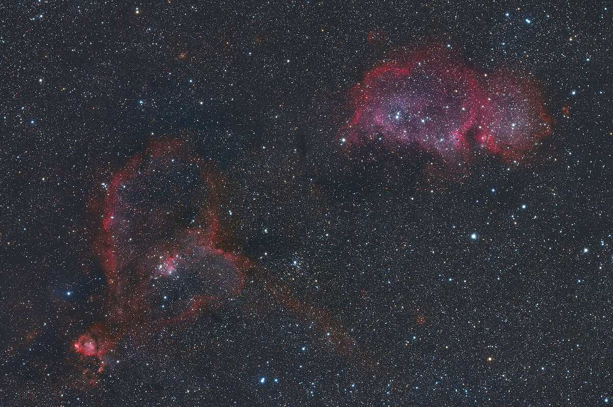 E via anche di settimo filtro! Per queste splendide nebulose ho usato in sequenza i seguenti filtri: Rosso, Blu, Verde, Luminanza, Ha, Oiii ed infine Sii! Dai primi quattro ne è uscita l'immagine LRGB che ho già postato ed è quella con i colori reali acquisiti dal sensore