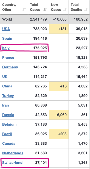 “ La Svizzera, per esempio e' a quota infetti superiore all'Italia ma i morti son dieci volte meno. „