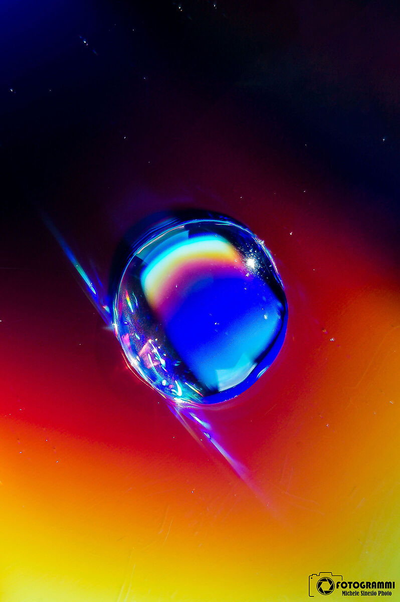 E' una goccia d'acqua sul retro di un CD. Con la torcia dello smartphone ho ricreato quei colori che vedete grazie al riflesso sul CD e sempre con la torcia ho dato alla goccia quell'effetto che vedete a sinistra della goccia. La post produzione l'ho usata solo per un pò di contrasto e per far risaltare la goccia.