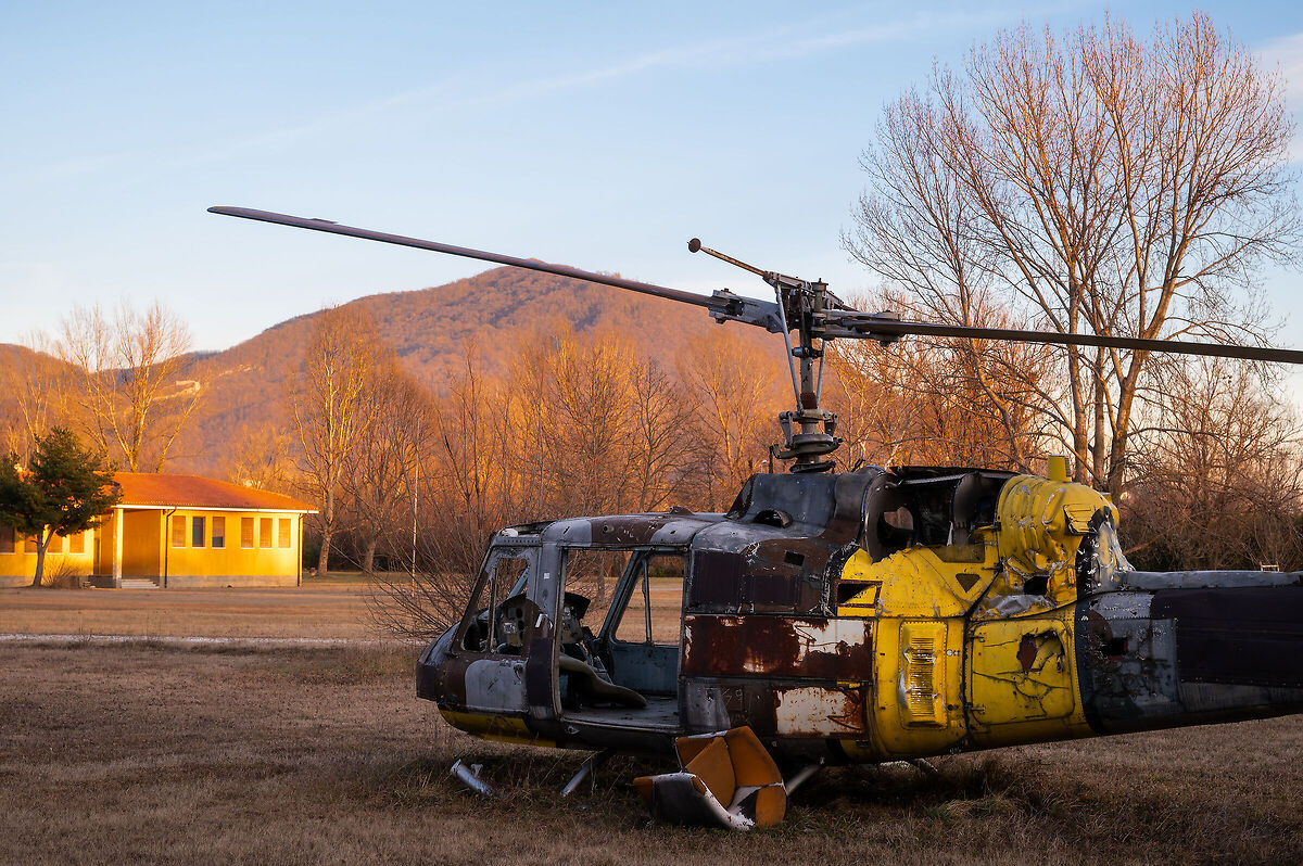 Bello scatto questo elicottero, la nitidezza è una certezza, notevole il dettaglio fino su tutta l'immagine e in particolare si apprezza anche guardando i rami dell'albero spoglio. Infine direi ottima resa cromatica Cool