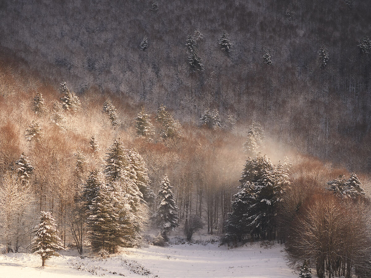 “ Per quanto riguarda le scene statiche l'istinto è meglio lasciarli perdere, in quel caso uno scatto non ragionato offre scatti poco interessanti se non banali. „ Signessuno sopra ha spiegato bene cosa si intende per istinto in scene che state definendo "statiche". Oltretutto un paesaggio non può essere statico, dal momento che bisogna metter conto di condizioni climatiche, condizioni di luce etc. Lo still life è uno scenario statico dove sei tu a far variare le condizioni e la luce, ma al di fuori di uno studio IMHO non credo possiam parlare di staticità. Faccio un esempio. -7 gradi e vento a non finire, questa scena si presentava a circa 1 km da me mentre percorrevo questo sentiero (non amo far appostamenti ed aspettare). Il mio occhio è riuscito a riconoscere questo scorcio rispetto a tanti altri cercando di riordinare gli elementi. La nebbiolina sull'albero (dovuto alla polvere che la neve crea cadendo dagli alberi) è durato giusto quell'istante che il mio istinto è riuscito a cogliere. Possiamo parlare di staticità in un paesaggio che si evolve seocndo dopo secondo ?