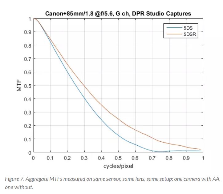 Nel grafico 0.5 cicli per pixel corrisponde a Nyquist. Lasciamo perdere per un attimo come Canon ha emulato l'assenza di AA montando due AA in controfase, non è un dettaglio importante, anche se altre Case l'AA l'hanno abolito del tutto per evitare artefatti dovuti al doppio filtro. Il filtro AA della Canon 5DS (traccia blu) è piuttosto blando. A Nyquist mostra MTF12. È la soglia a cui l'occhio comincia a non vedere più ipotetiche linee per mm, sarebbe stato meglio MTF8 (per esempio). Canon non ha voluto introdurre troppo "grigio" a Nyquist, perché questo è quello che succede, AA riduce la nitidezza percepita. La 5DSR (traccia nocciola) a Nyquist mostra MTF24, eventuali "linee" (dettagli) sarebbero visibili. Immaginiamo che il punto (0.5, 0.24) sia il cardine di una porta e chiudiamo la porta ripiegandola sulle frequenze < Nyquist. Succede allora che le frequenze "spurie" oltre Nyquist si "ripiegano" (folding) e si sovrappongono alle frequenze "pulite". In altre parole: danno luogo ad artefatti. Non sempre (in questo differisco da Ziojos ), ma molte volte è quello che succede con i Foveon. In presenza di una superficie abbastanza liscia (secondo un Bayer) possono comparire rughe e piccoli solchi che fanno gridare al miracolo-Foveon. Capire se sono veri o artefatti non è facile. |