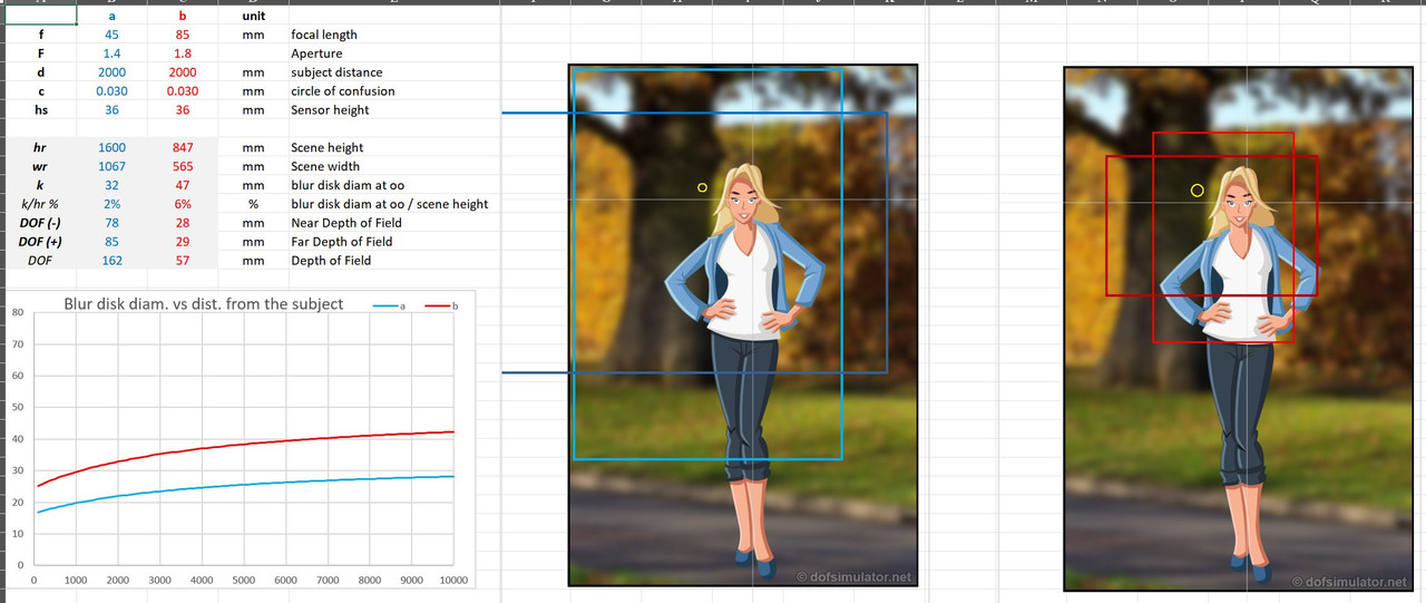 Per quel che mi riguarda, sono due focali molto diverse. Se uno vuol fare figura intera si possono usare entrambe, con distanze, pdc e diametro del disco di blur diversi.