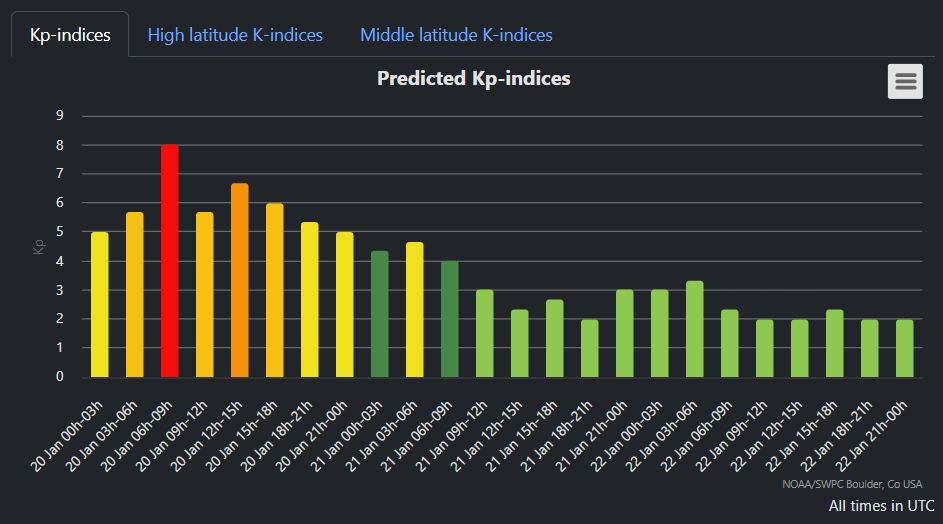 Al momento il KP è 7 e danno come picco di giornata KP8 (che probabilmente c'è già stato), ma toccherà iniziare a scaldare la macchina, ho capito, 2 sere di fila è quasi un regalo! MrGreen
