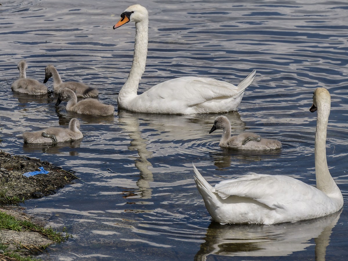 Se ti riferisci ai cignetti, questi sono i loro fratelli maggiori (foto del 6 giugno 2017):