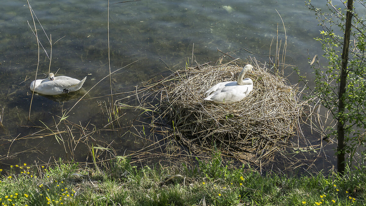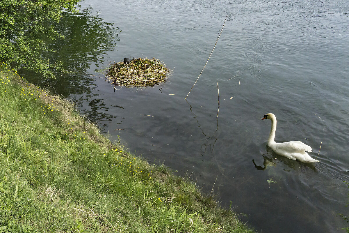 Mi sembra che nel loro comportamento ci sia della logica; ovviamente una logica istintiva, perché non è il caso di attribuire un'eccessiva intelligenza ai cigni. Anche la scelta della sponda lombarda per la cova, nonostante sia meno tranquilla, ha un senso. Infatti, essendo esposta a sud, è soleggiata (in quella piemontese si è sempre all'ombra degli alberi) e quindi il calore ha favorito la schiusa delle uova. Poi, di tanto in tanto, facevano una "rimpatriata" sulla nostra sponda, come in questa foto che già conosci www.juzaphoto.com/galleria.php?t=2388292&l=it Ma poi, regolarmente ritornavano in Piemonte. |