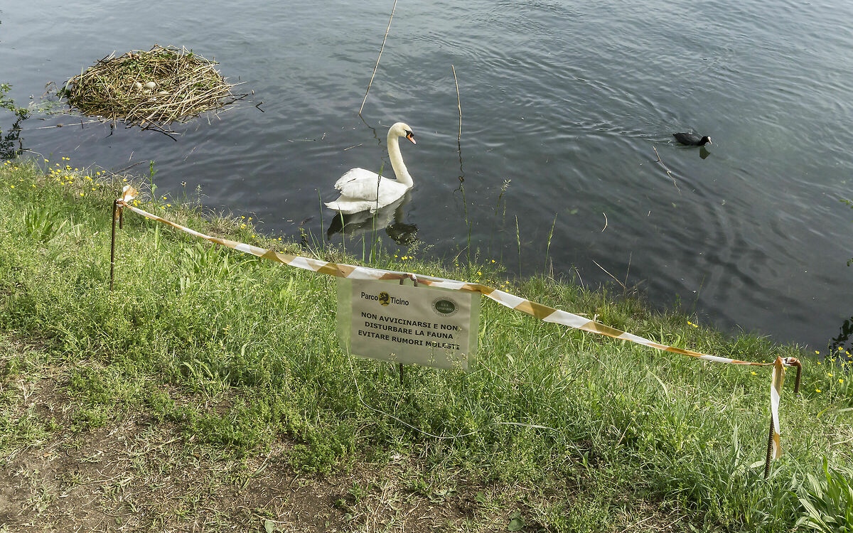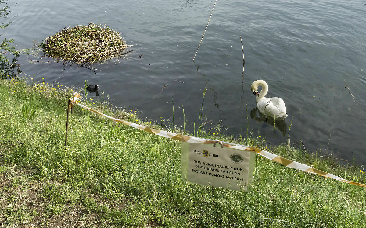 E' quello che hanno fatto nel 2017. Dopo aver abbandonato il nido con un uovo tardivo www.juzaphoto.com/galleria.php?l=it&t=2339231 Si sono trasferiti sulla sponda piemontese dove non c'è né lungofiume né alzaia, ma bensì giardini di ville che arrivano fin sulla riva del Ticino