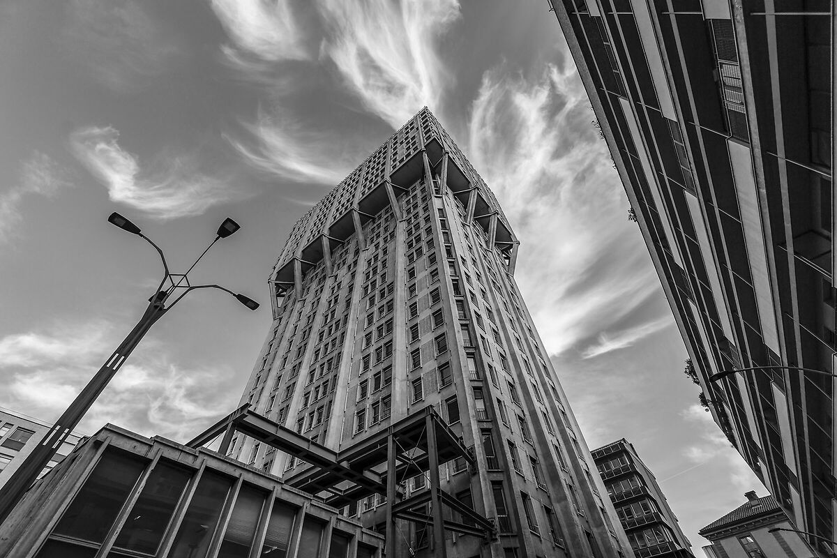 www.juzaphoto.com/galleria.php?l=it&t=2682315 Magari il cielo tempestoso la rende suggestiva; ma se dovessi usarla per un articolo su una rivista di architettura dedicato a quell'edificio, tornerei a rifotografarlo con un cielo uniforme. |