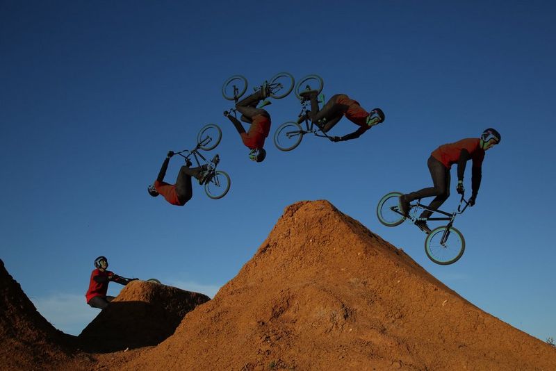 Però immagino che, se non si vuole trasformare il soggetto in movimento in un fantasma, come nel caso del ciclista "in volo", occorra unire gli N scatti in post-produzione.