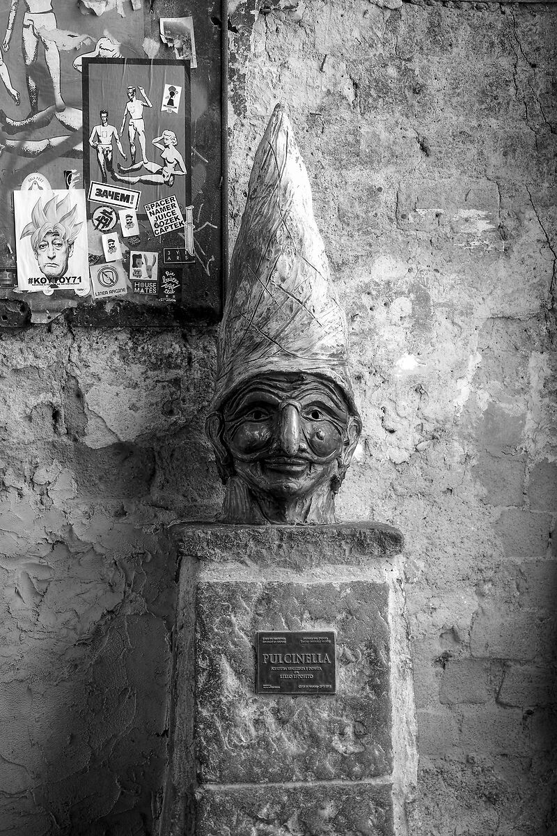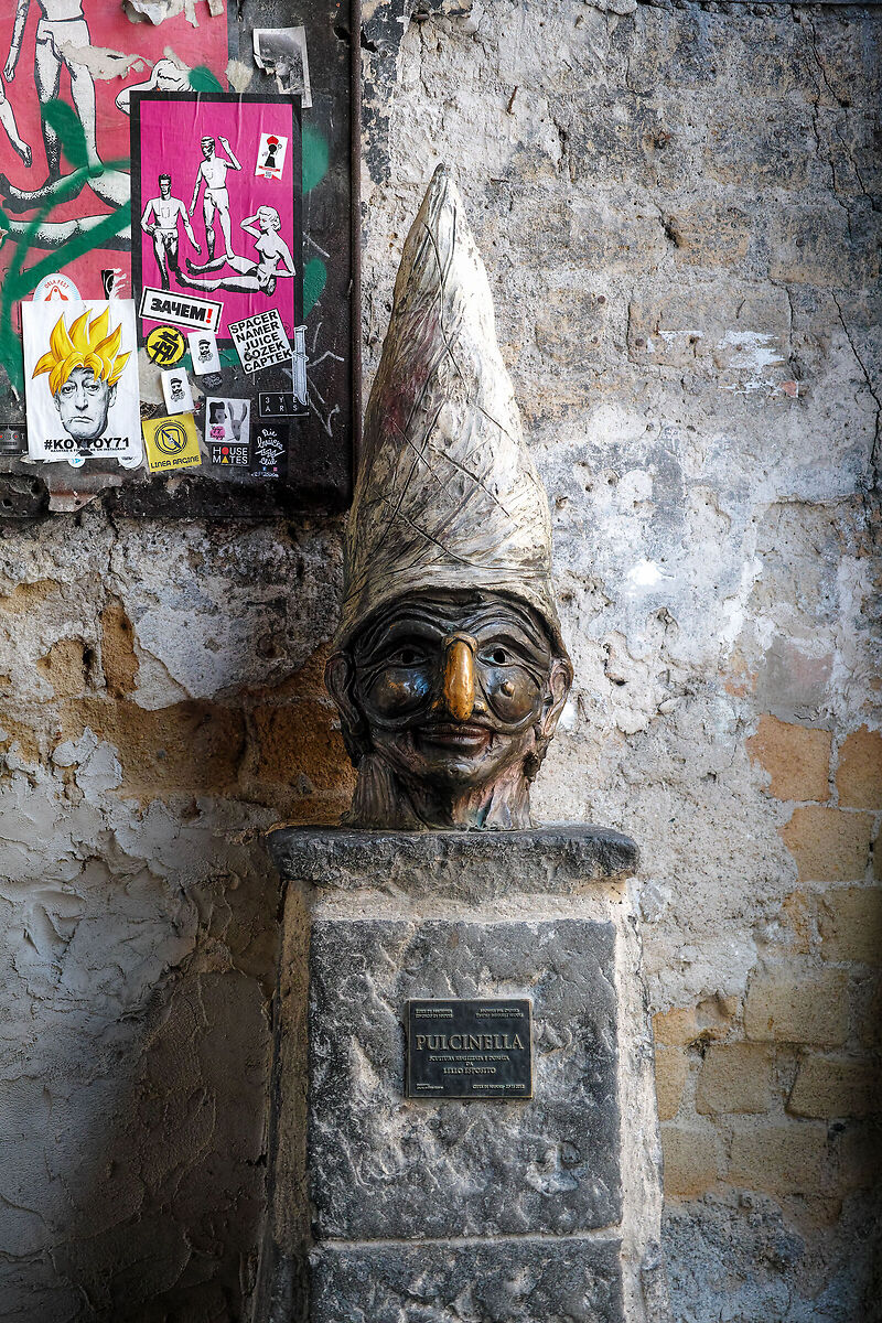 Impensabile sottrarsi ad una foto accanto alla scultura di Lello Esposito, collocata in via Tribunali...