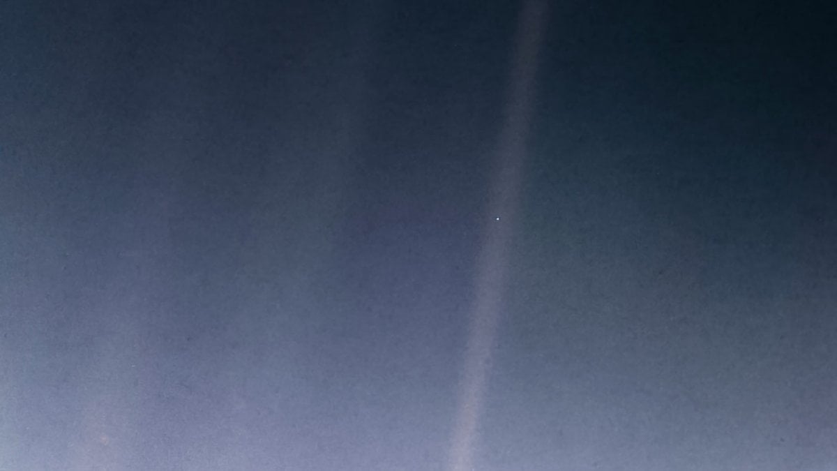 ".......sembra improbabile che, se esistono, gli alieni non siano mai giunti sulla Terra,.." Noi siamo una razza giovanissima, addirittura la Storia dell'Uomo inizia con la scoperta della scrittura, fatta solo circa 5.500 anni fa. 5.500 anni, su scala planetaria terrestre sono un arco temporale che è praticamente nulla rispetto all'età della Terra (4,5 Mdi di anni) ed è ancor meno su scala interstellare o galattica (l'Universo ha 13,8 Mdi di anni). Essendo l'Universo così antico, potrebbe esistere una razza intelligente magari vecchia di centinaia di migliaia o milioni di anni, matematicamente c'è la certezza che esistano altre razze intelligenti. Se una razza simile fosse passata di qua, sulla Terra, in pompa magna, trombe e tamburi, anche solo 10.000 anni fa, noi non lo sapremmo mai, non avremmo alcuna traccia del loro passaggio qui, per noi troppo remoto nel tempo. Ma quella visita di 10.000 anni fa per una razza cosi vecchia sarebbe una visita tutto sommato fatta di recente su un pianetino, la nostra Terra, di un sistema solare comunissimo, in una galassia come ce ne sono miliardi, che ruota attorno ad una stella, il nostro Sole, che è uno scaracchio rispetto alla media delle stelle, circa 400 Mdi, della nostra galassia, e dell'Universo, trilioni e trilioni. Questo, quel puntino chiaro nella luce, è il nostro pianeta vista dalla sonda Voyager 1, nel febbraio del 1990