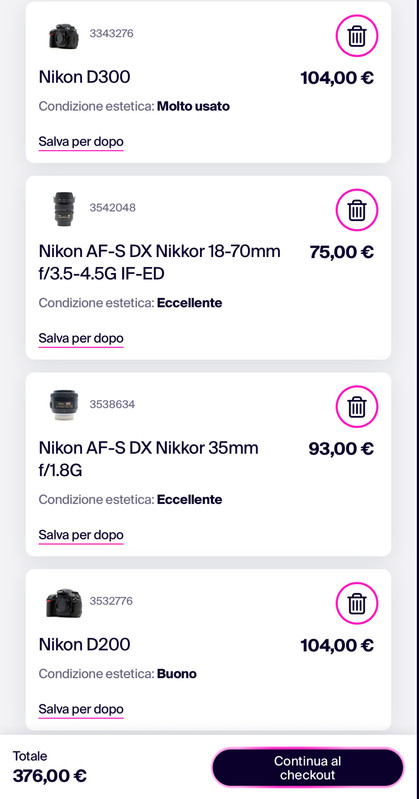 Datemi una mano, devo eliminare dal carrello una fotocamera ed un obiettivo: