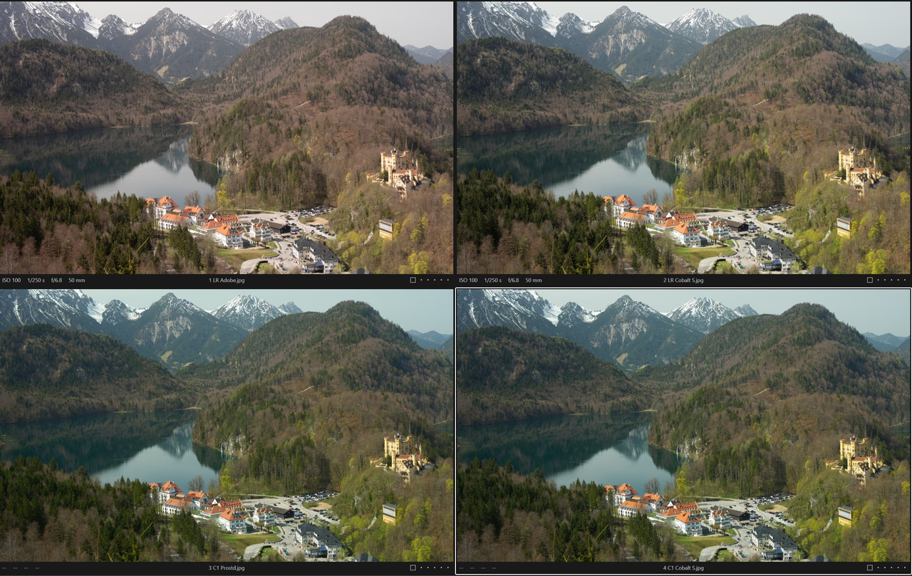 “ Ok avevo capito male ma le differenze tra i vari profili sono veramente minimali, mentre lo scostamento in postproduzione da noi fatto è molto elevato se confrontato con i diversi profili e quindi perchè fissarsi su tali finezze se quasi nessuno di noi fa fotografia industriale in serie? „ Più che altre per sfruttare al massimo le potenzialità del proprio sensore in termini di GD, resa cromatica e utilizzo fino all'ultimo pixel, poi logicamente circa la resa colore ognuno se la personalizza a proprio piacimento, e comunque pur usando i profili Cobalt la resa (cromatica) varia, e non di poco, a seconda del sw di PP utilizzato, vedi le foto con il Castello di Hohenschwangau. |