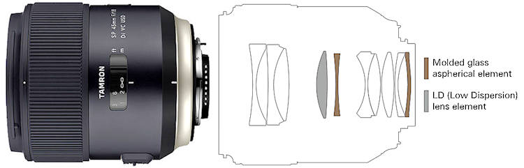 Se infatti vai a vedere il 45/1.8 Tamron EF, ha uno schema più complesso rispetto al doppio gauss evoluto del 45/1.2 e ci sono due asferiche e una low dispersion per giunta: