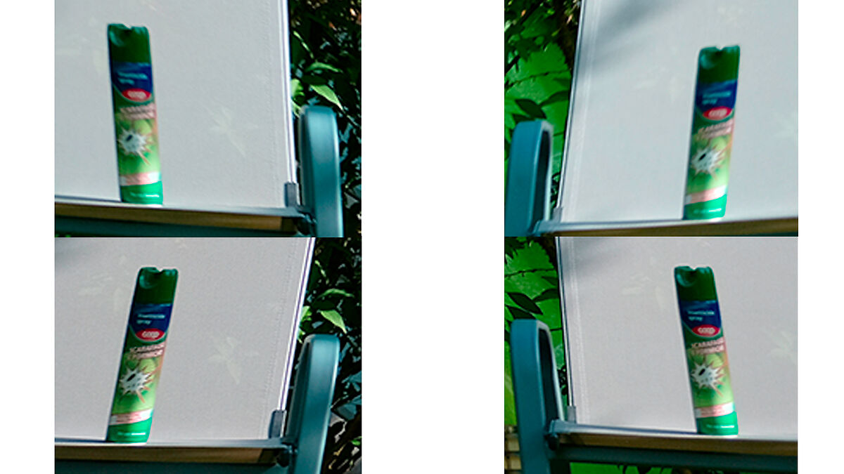 “ Ho linkato una procedura semplice per valutare il disallineamento „ Ecco qui un test proprio veloce veloce eseguito a 18mm da qualche metro di distanza, ho lasciato i ritagli nella posizione originale per capire meglio. Ovviamente F2.8, macchina su treppiede, otturatore meccanico. Sembrano leggermente più morbidi gli angoli superiori ma la forma pare simile in generale. Jpg presi dalla SD.