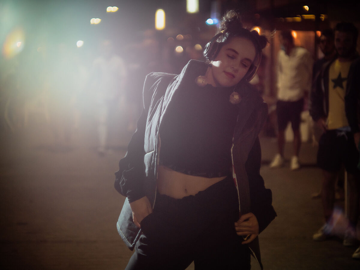 Bella foto, tanta perdita di contrasto per flare (che ci sta bene) ma la risoluzione c'è nonostante il sensore piuttosto denso, si vede nella cucitura del giaccone sotto la mano in tasca.