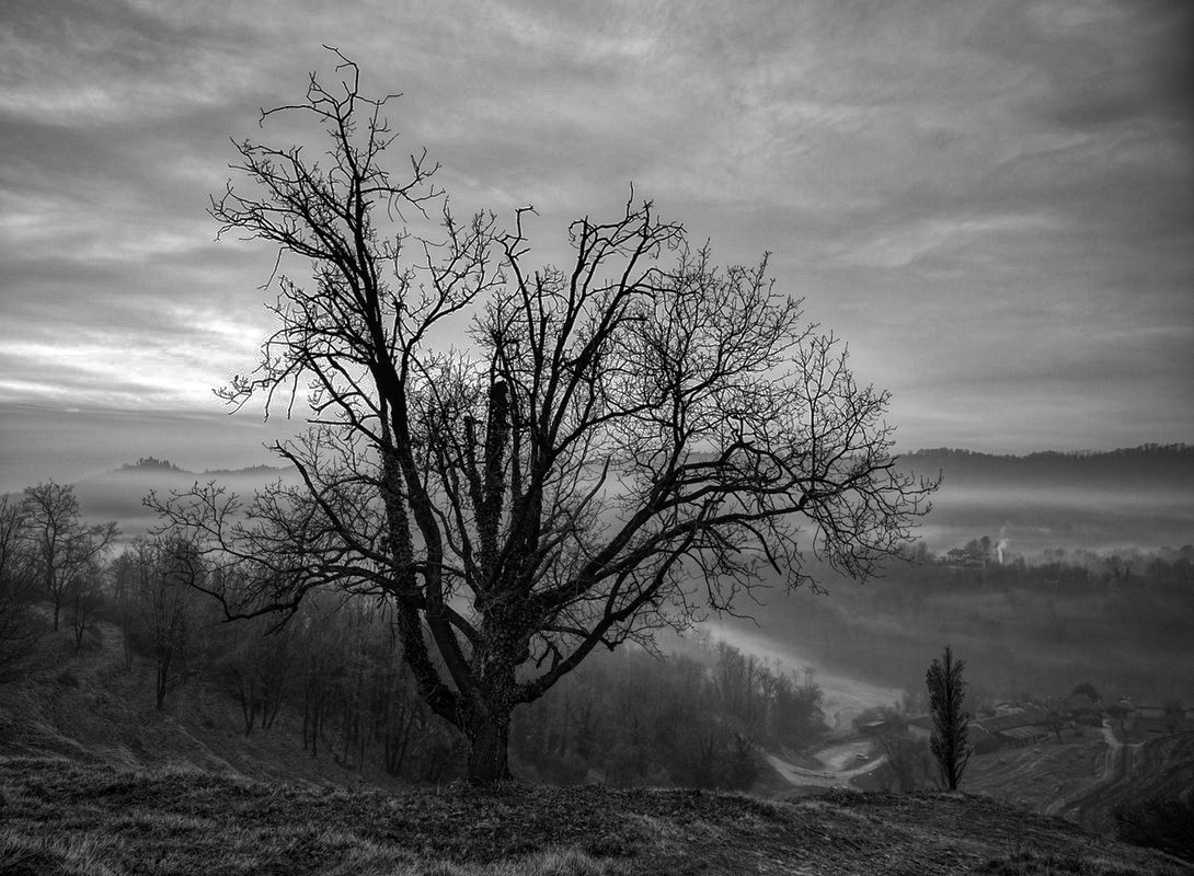scusa ma non ho resistito, nessuna gara ma solo per evidenziare che voler piu contrasto tra le zone non significa inseguire Istgram, ma semplicemente fare evidenziare le aree tra loro, devo dire che pur con un jpeg c'e un'ottima manealbilità PS. fatta velocemente, a guardarla adesso avrei divuto lasciare il cielo un piu chiaro, cosi si cinfonde con lo sfondo, comunque a stampare la tua devi schiarire lo sfondo altrimenti l'albero sotto non risalterebbe