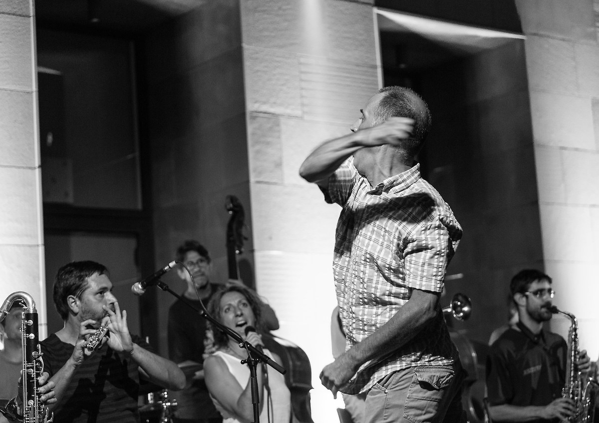 L' Orchestra senza confini/Orkester Rez Meja (Italia-Slovenia-Croazia) ha due direttori Giovanni Maier, nella foto, e Zlatko Kaučič.