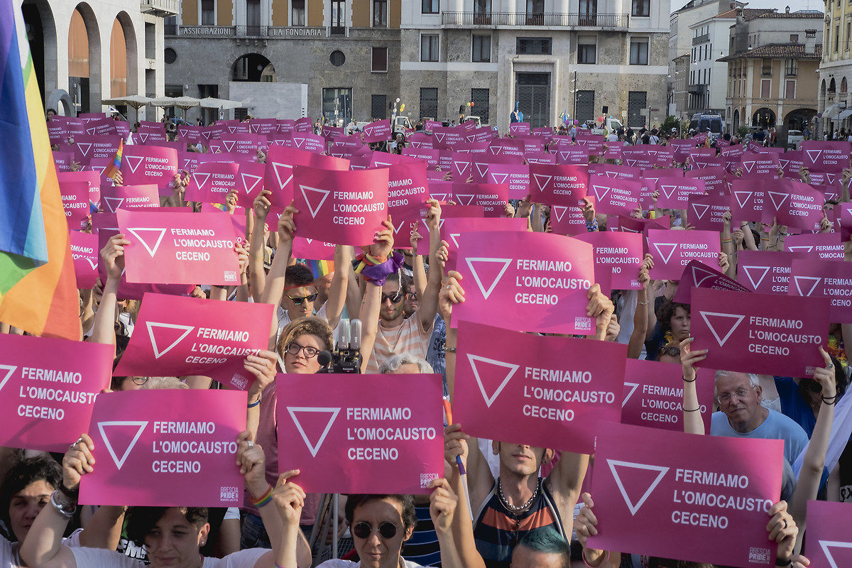 Questo messaggio è a sostegno degli omosessuali ceceni, costretti a scappare dal loro paese per evitare ogni sorta di tortura. Scariche elettriche e manganellate sono ancora oggi la punizione che obbliga alla fuga molti ragazzi del paese caucasico.