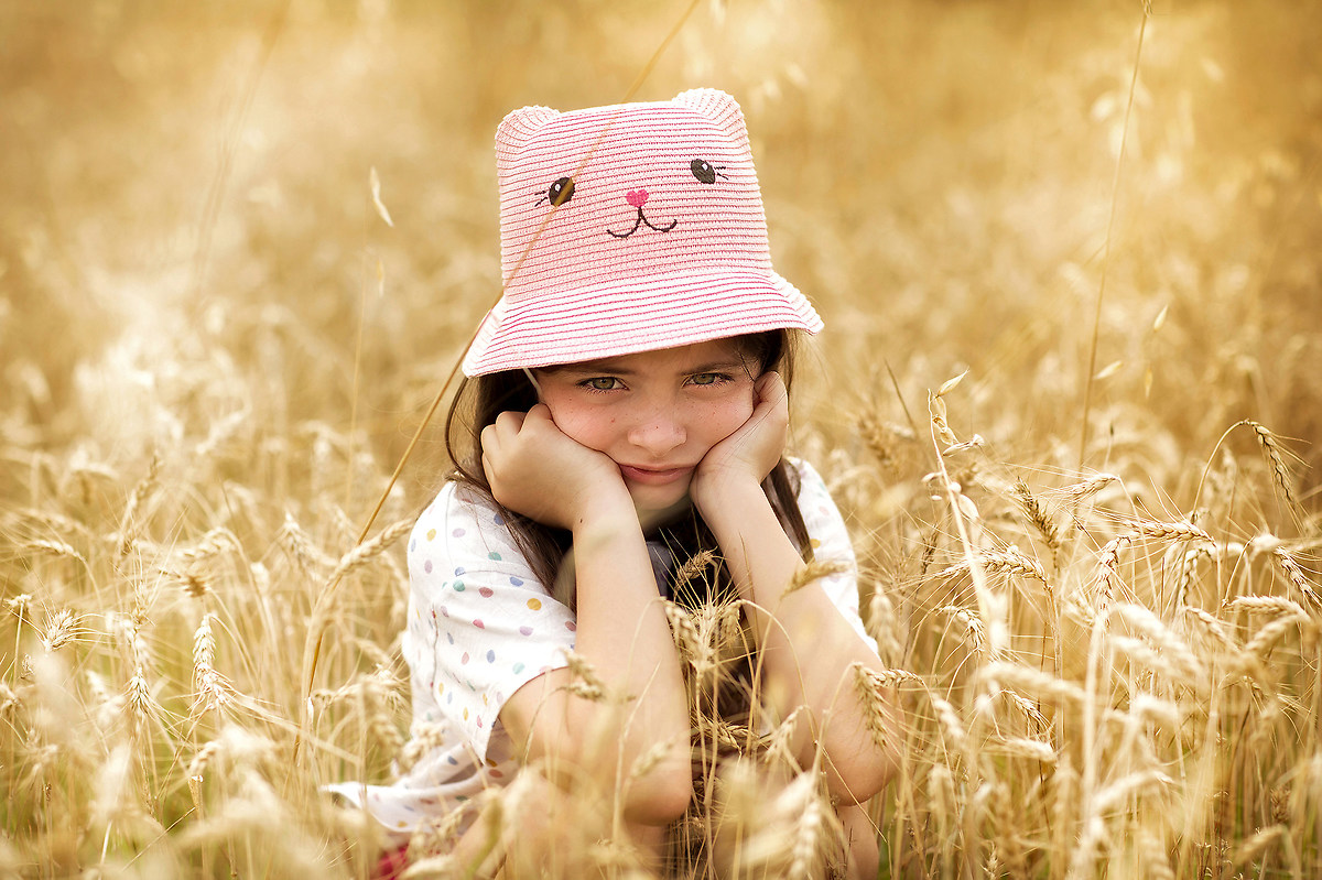 Luce dorata, spighe di grano e una graziosissima modella. Ci sono tutti gli elementi per un eccellente scatto estivo.