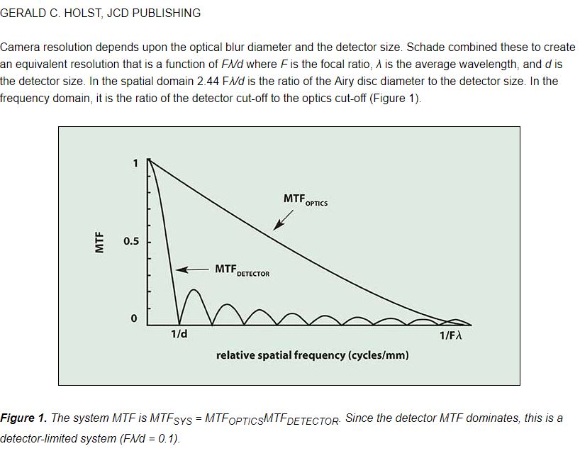 A me questa affermazione suona molto criptica. Ci sono due regimi in fotografia digitale: detector-limited e optics-limited. Sono cose note dagli anni '50 quando si cominciò a caratterizzare la qualità delle immagini TV. Visto che hai la preparazione di base, ritorna qui quando hai digerito questo: