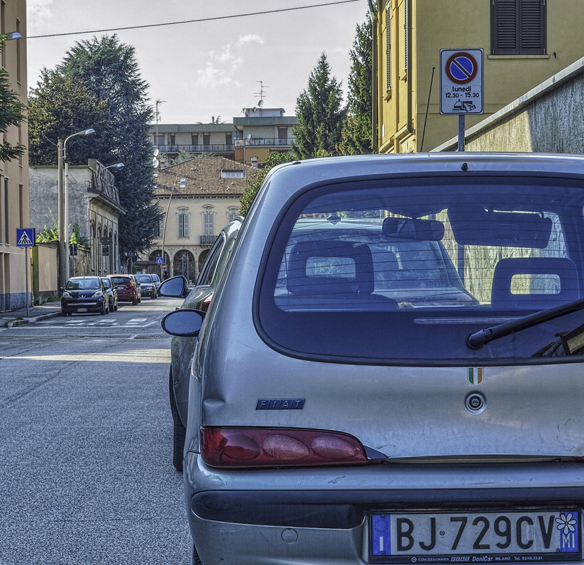 @Bubu: 500% sotto PS CC 2017 con ottimizzata l'interpolante da Preferences PS (zoom in tempo reale, non Resize, ma non è che migliori molto con Resize). Poi Snipping Tool, del resto usato anche sul 500% Irfanview. Per restare nell'argomento diffrazione, questo è un esempio tipico di Merrill f/16, fuoco sullo sfondo, Seicento a 3.7m, notare come si leggono i caratteri piccoli della targa (secondo Merklinger: 30/16=~2mm)