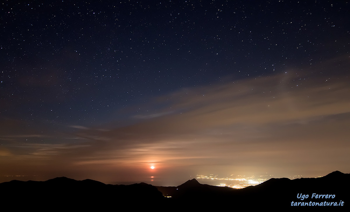 “ Hai usato qualche filtro? „ Se ti riferisci alla mia foto no, non ho usato nessun filtro. “ Ugo è bellissimaEeeek!!! Attualmente sono a policastrello, alle pendici del parco del Pollino sul versante calabrese (nei dintorni di Altomonte) non godo di un panorama bello come quello ma proverò a fare qualcosa anche io nei prossimi giorniSorriso „ Grazie ! Tieni presente che la luna sorge ad est ( più o meno ) io ero sul versante Jonico e quindi vedevo la luna sorgere dal mare, da dove sei tu la vedrai sorgere da terra, quindi dovrai spostarti e cambiare versante |
