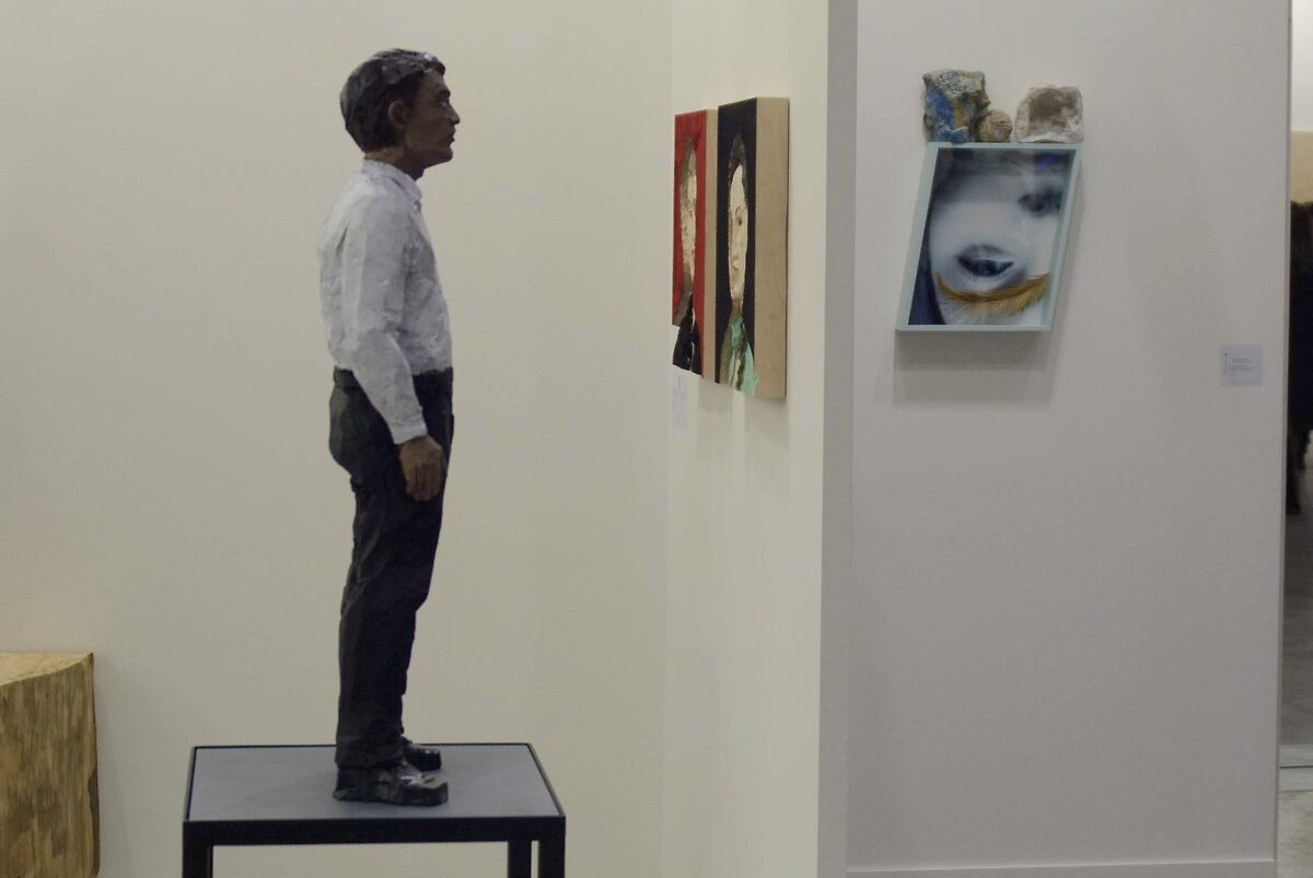 uomo che guarda i quadri