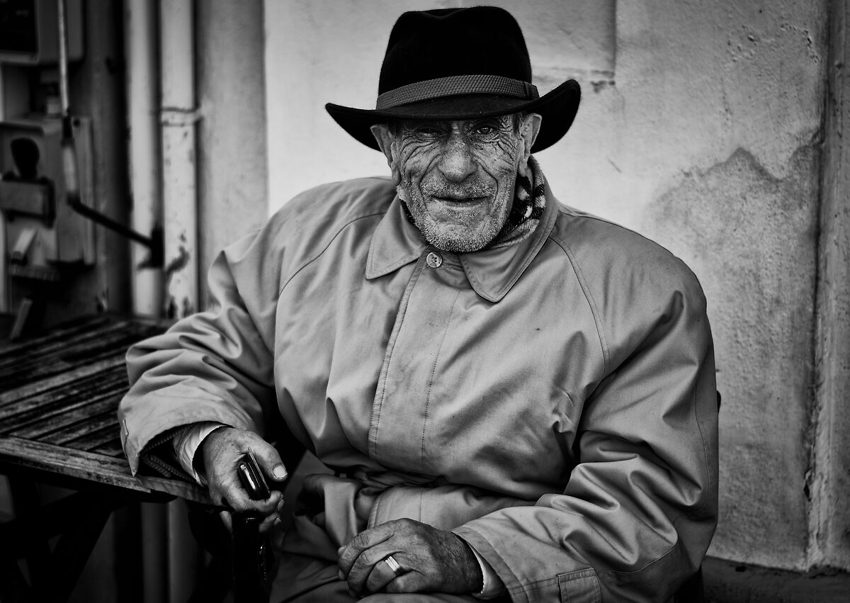 Ciò che amo di piu' della fotografia è quella sottile empatia che si può trovare negli sguardi di chi viene ritratto per caso......l'uomo che ho immortalato era seduto all'esterno di un bar con uno sguardo buono e sereno...vado verso di lui e lui si accorge di me e soprattutto della macchina fotografica.Alzo la reflex in segno di domanda,lui capisce e si mostra fiero dello scatto che sto per fare.....prima di andare via gli mostro la foto e timidamente mi ringrazia .......la ricerca di questi piccoli particolari mi spinge a continuare in questa splendida passione...attraverso il mirino il mondo è un po' piu' bello