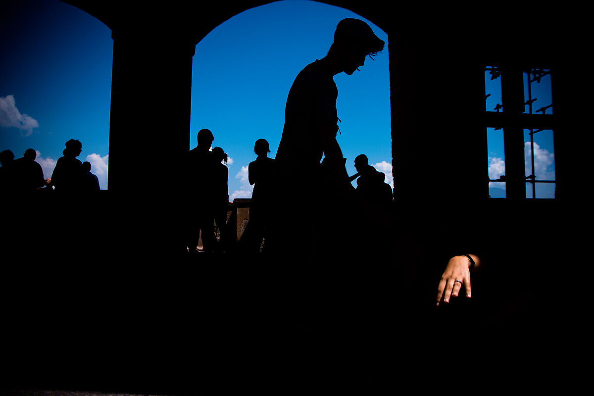 Autore: Dino73 www.juzaphoto.com/galleria.php?l=it&t=4508597 Riporto uno stralcio da uno dei commenti alla foto che condivido appieno: “Tutto, o quasi, è lasciato all'immaginazione e alla sensibilità dello spettatore, che non può fare a meno di chiedersi di chi è quella mano e chi sono le persone di cui si vedono le silhouette. Il tutto immerso in un'estetica quasi surrealista.” Aggiungo che a me ricorda, più nella forma che nei contenuti, una famosa foto, e anche lo stile, di Alex Webb. |
