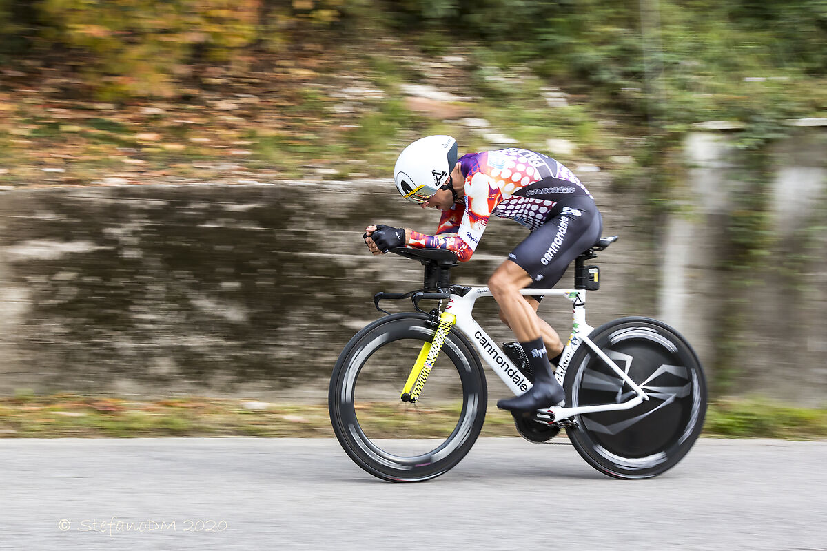 Poi è tutta una questione di allenamento, vedrai che se fai 500 scatti solo panning, poi ti vengono. Sicuramente in salita non è la condizione ideale, dato che vengono piano e devi scendere con i tempi (parli di 1/50 o 1/10, che è decisamente lungo; potrebbe funzionare con un bel grandangolo, ma con un tele molto difficile). Prova in piano o in discesa dove puoi stare un po' più largo, ma soprattutto dove eviti i problemi seguenti: Nella foto che hai postato hai una lunghezza focale lunga e un ciclista veloce (sembra un PRO), quindi sicuramente i tempi minimi sono più alti. Ma, soprattutto, in salita il corpo si muove molto anche in verticale e lateralmente, quindi è pressoché impossibile averla nitida. Puoi puntare sulla bici, ma anche in quel caso il movimento laterale ti impedisce di fare un panning ben fatto.